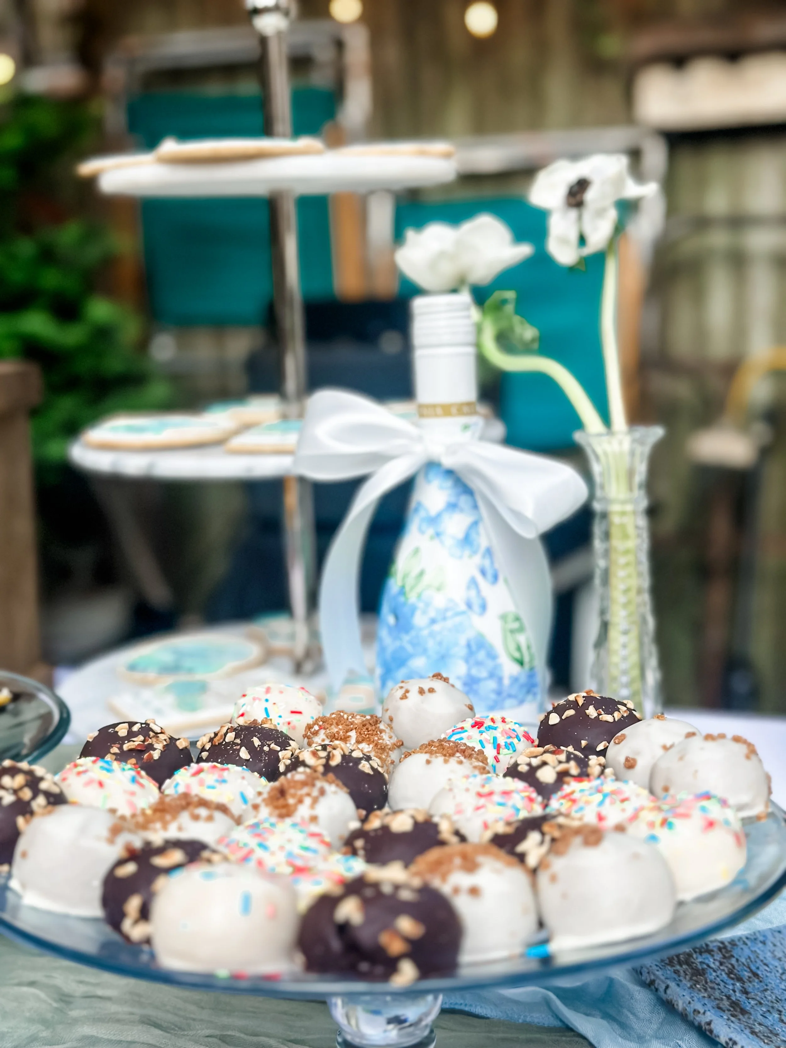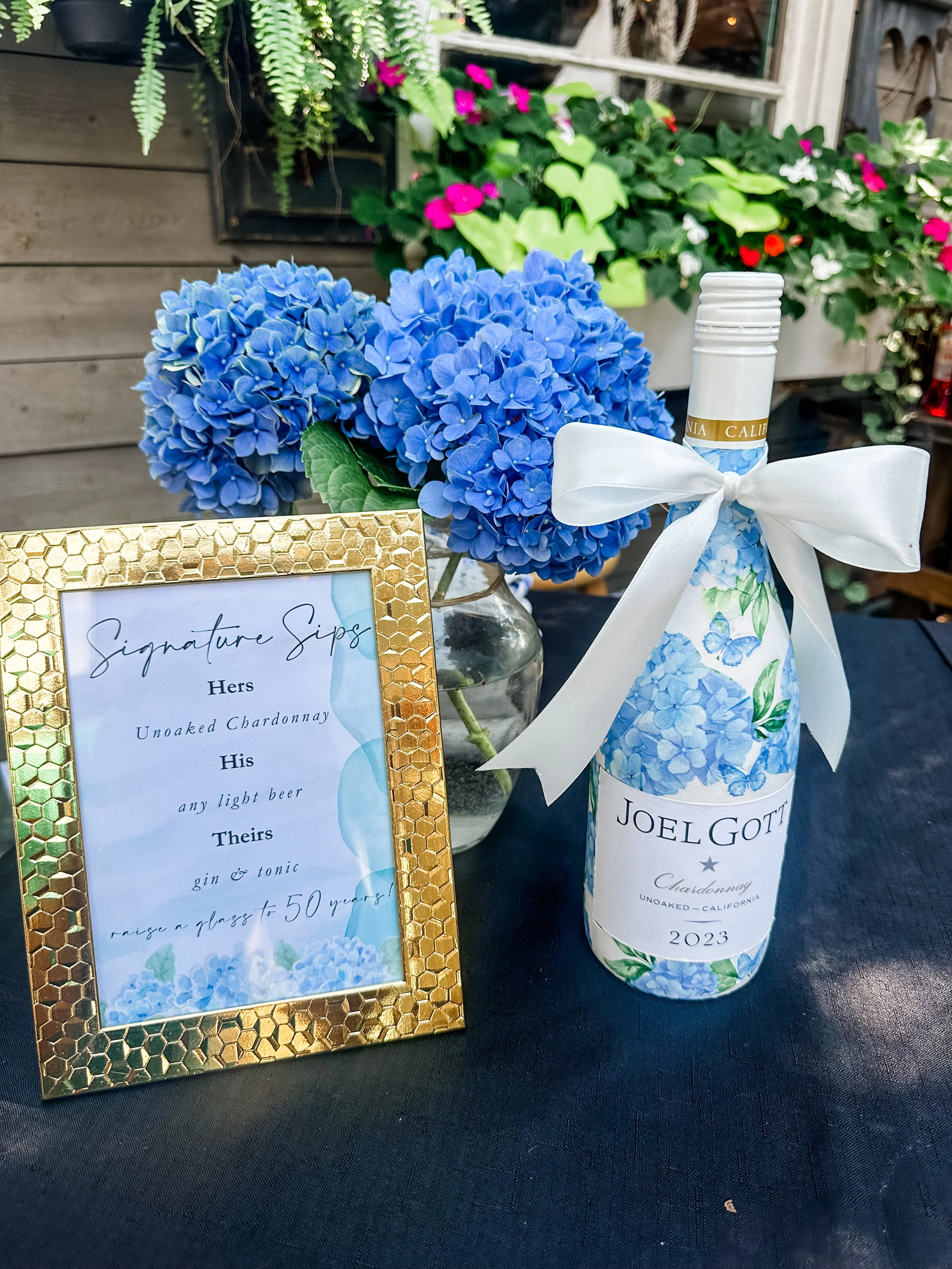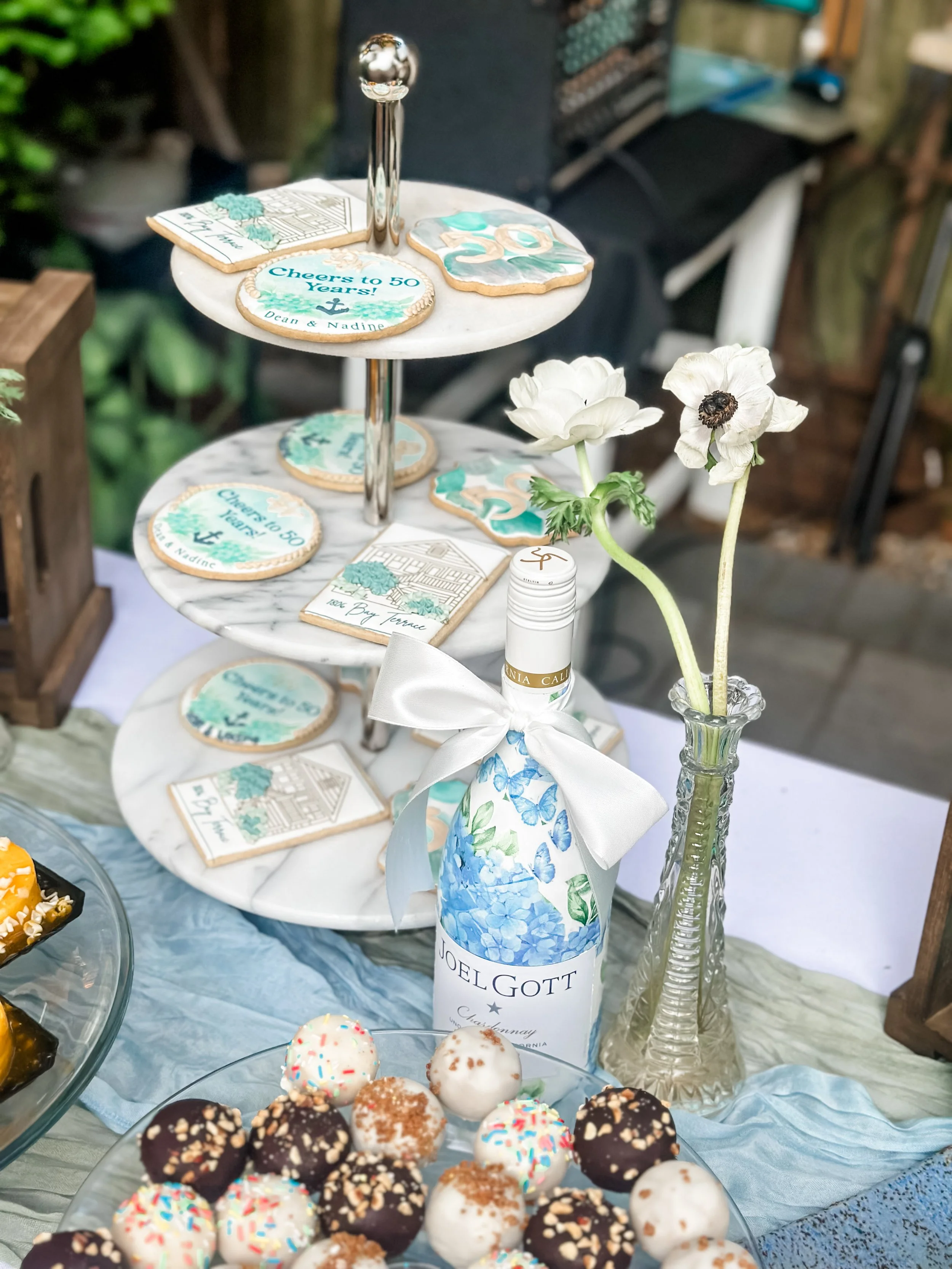 Homemade accents are some of my favorite to incorporate and are a great way to drive the theme even more. Cookies from “Kerrie’s Creations” based out of Shamong, NJ is my go-to vendor for adding additional “works of art” to my events. My gift to the host was a few hydrangea covered wine bottles to use as decor and for her to enjoy later.
