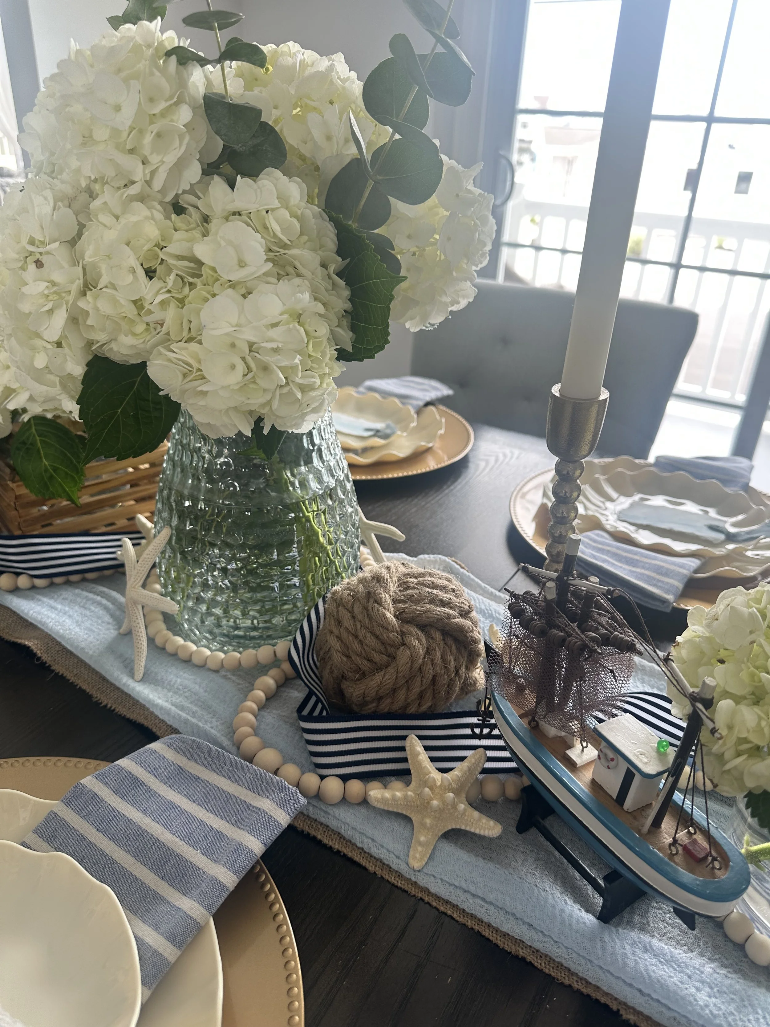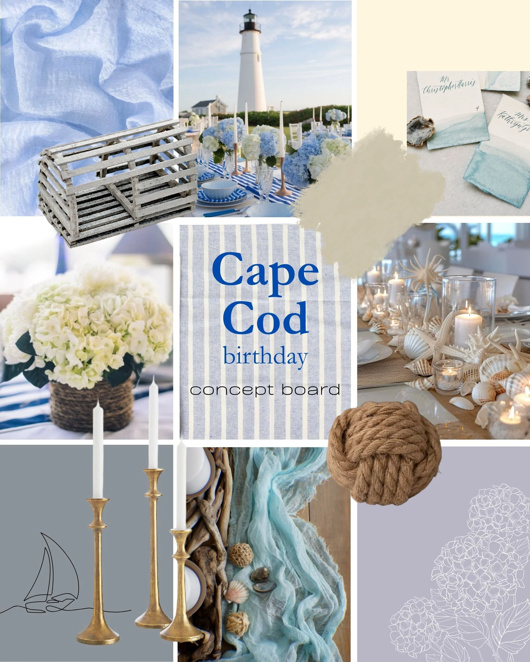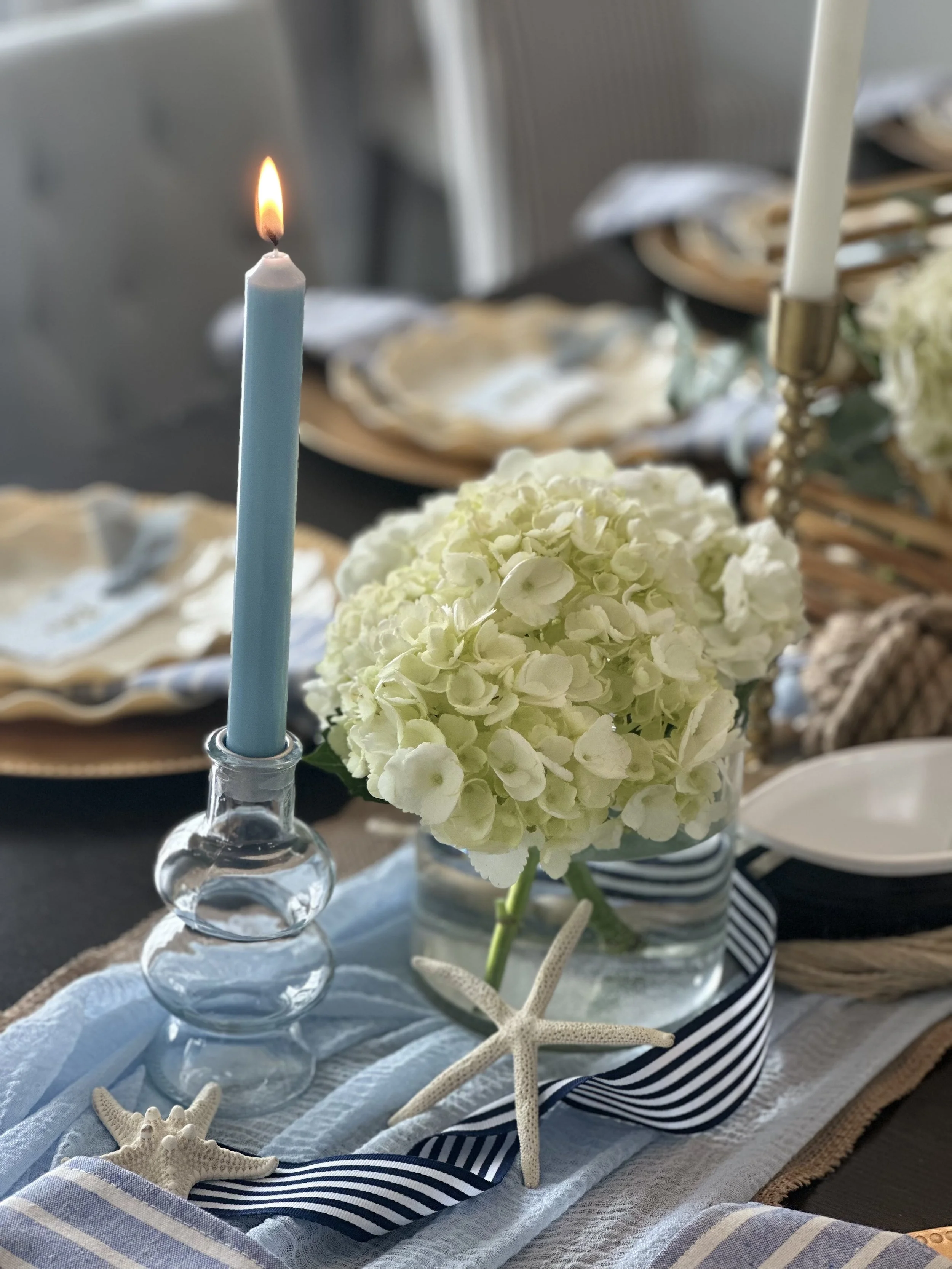 You really can’t go wrong with a soft coastal themed party, especially with the popularity of shows like “The Summer I Turned Pretty”, and the song “East Coast Summer” by Kaleb Cohen being a top trending sound on social media all summer long! That became ever more apparent when this tablescape was booked three times in one month! We turned this popular theme into a “to-go” box and replicated it for two birthday parties (one inside, one al fresco), and again for a bachelorette beach party.
